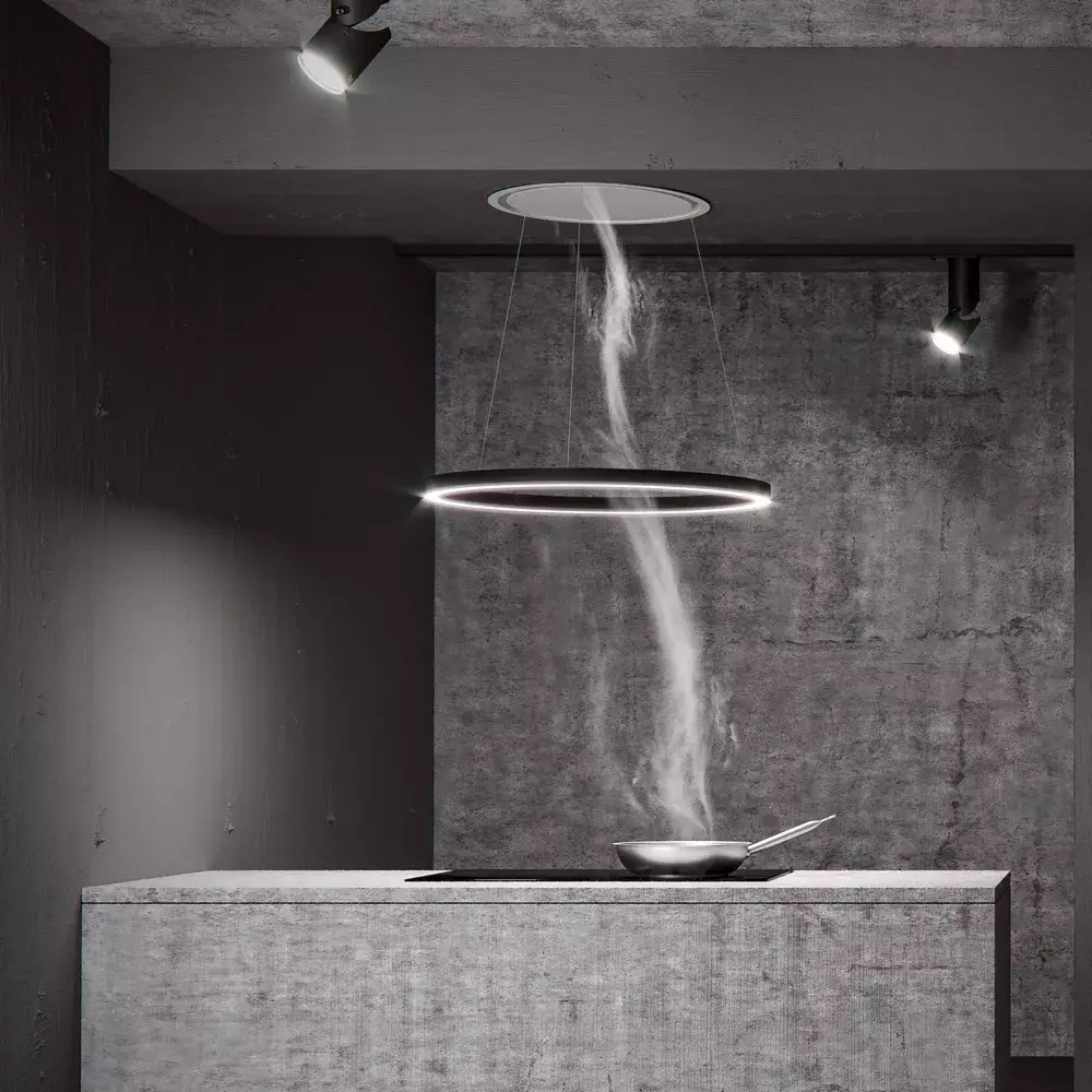 A mennyezeti beépítés egyik legnagyobb előnye, hogy teljes szabadságot ad a konyhai tér kialakításában. Nem takarja el a kilátást, nem uralja a látványt, így különösen ideális nyitott terű vagy modern konyhákba. A 75 cm szélesség optimális lefedettséget biztosít a főzőzóna felett, miközben megőrzi a tér könnyedségét. A fekete szín elegáns, határozott megjelenést ad a konyhának, és jól illik a világosabb és sötétebb bútorokhoz is. Letisztult, modern összhatást teremt, anélkül hogy túl harsány lenne. A Sirius Halo azoknak készült, akik nem a divathullámokat követik, hanem hosszú távra keresnek megbízható, időtálló megoldást. „A mennyezetbe épített páraelszívó a konyha csendes, mégis nélkülözhetetlen segítőtársa: észrevétlenül végzi a dolgát, miközben folyamatosan gondoskodik a a helyiség tiszta, friss levegőjéről.
