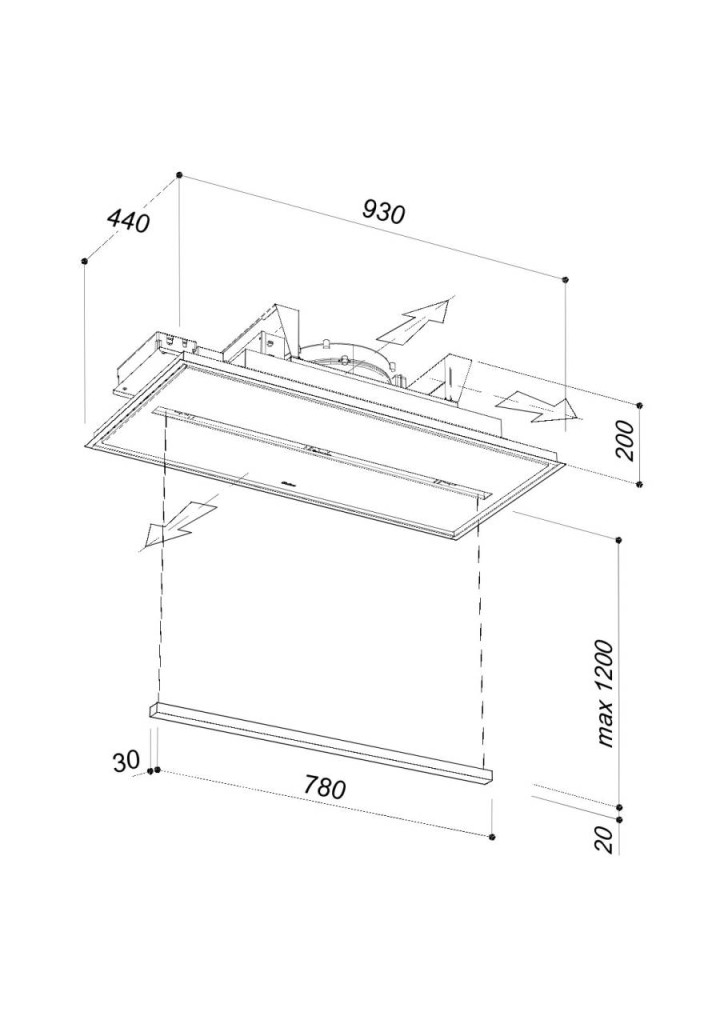 A Line (SLT-977) mennyezeti páraelszívó egyszerű világítási vonalak és egy elszívó rendszer kombinációjából született, teljesen integrálva a mennyezetbe. A nagy hat&
