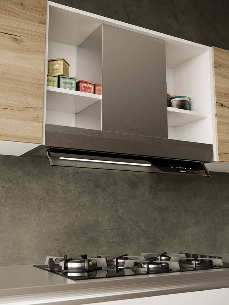 Ez az új, integrált Sirius modell, amelyben a telepítés egyszerű és a fali egység vágása nélkül történik. Formájának köszönhetően több hely marad a fali egység belsejében. Dizájnja úgy lett kialakítva, hogy könnyedén belesimul a konyhabútorba, így harmonikusan illeszkedik modern és klasszikus konyhai környezetbe egyaránt. A készülék ötvözi az esztétikus megjelenést a fejlett műszaki jellemzőkkel, így optimális szellőztetést biztosít.