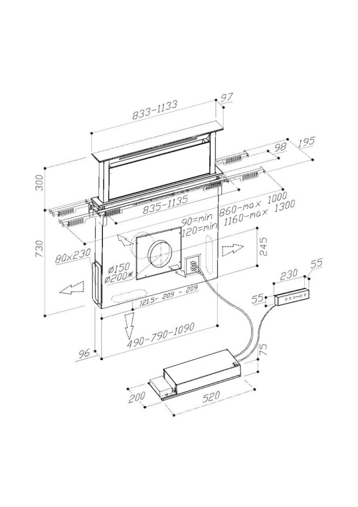 A 114 cm-es szélesség 120 cm-es minimális szekrényméretben pultba építve kiválóan illeszkedik a modern és klasszikus konyhákba egyaránt. A távirányítóval szinte a konyha bármely pontjáról kényelmesen vezérelhető: egy gombnyomásra kiemelkedik a pultból, beállítható a 3 fokozat és a turbó üzemmód, aktiválható az időzítő és kapcsolható a világítás. Ez a megoldás gyorsabb, kényelmesebb és biztonságosabb használatot tesz lehetővé, különösen akkor, ha egyszerre több fogást is el kell készítenünk.