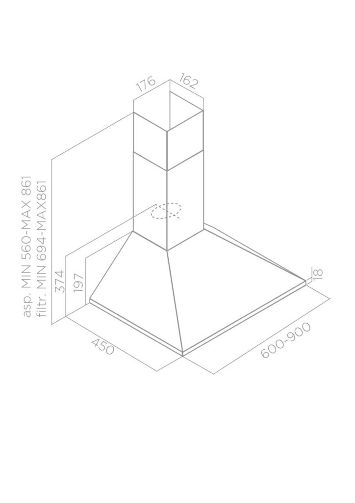 A készülék továbbfejlesztett energiatakarékos és költséghatékony LED világítással rendelkezik, melynek élettartama tízszerese a hagyományos izzókénak, ugyanakkor 90 %-kal kevesebb energiát fogyaszt. A páraelszívó falra szerelhető és 3 sebesség fokozattal rendelkezik. Inox színben, 60 és 90 cm széles méretben elérhető, így bármely főzőlap fölé tökéletes megoldást nyújt. A benne található nagyteljesítményű motor kiemelkedő nyomásértéke miatt 4-6 méter hosszú kivezető csőszakasz esetében is megfelelő légszállítást biztosít. A fém zsírfilterek mosogatógépben moshatók.