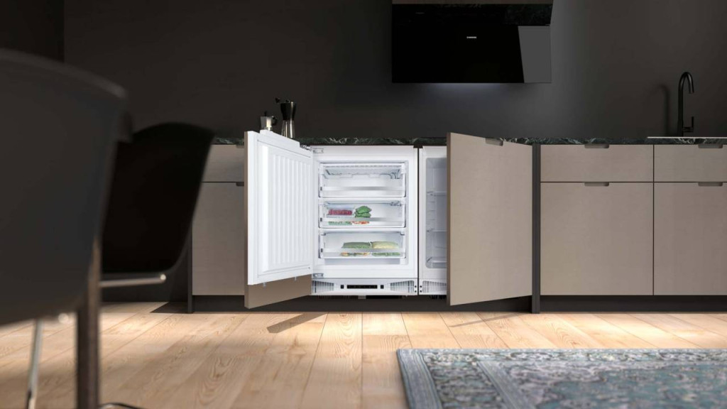 pult alá építhető fagyasztószekrény, 95 literes fagyasztó, elektronikus hőmérséklet szabályozás, nyitott ajtó riasztás, 3 db fagyasztórekesz, fogyasztás: 176 kWh/év, fagyasztó kapacitás: 4,5 Kg/24 óra, zajszint: 40 dB(A), megfordítható ajtónyitás