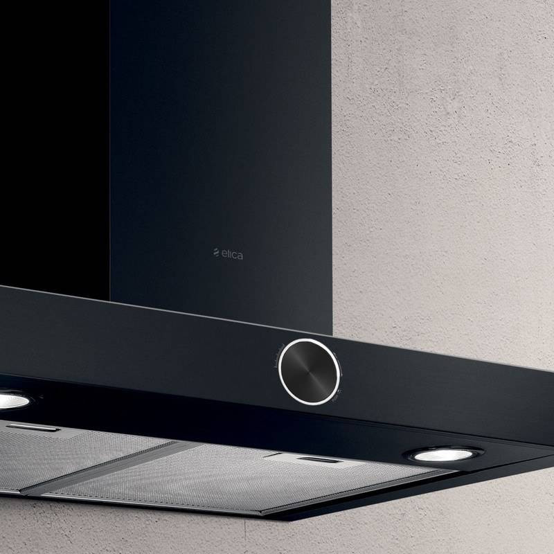 Elica LOL BL/A/60 MOON EDITION fali páraelszívó matt fekete színben, fekete forgó vezérléssel és alumínium zsírfilterrel.