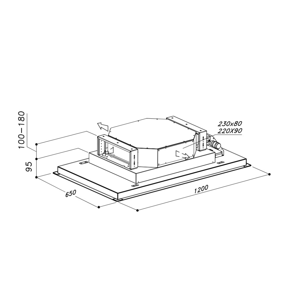 SIRIUS SLT-971 LESS TW 4V (Inox) – Mennyezetbe építhető páraelszívó, 120 cm